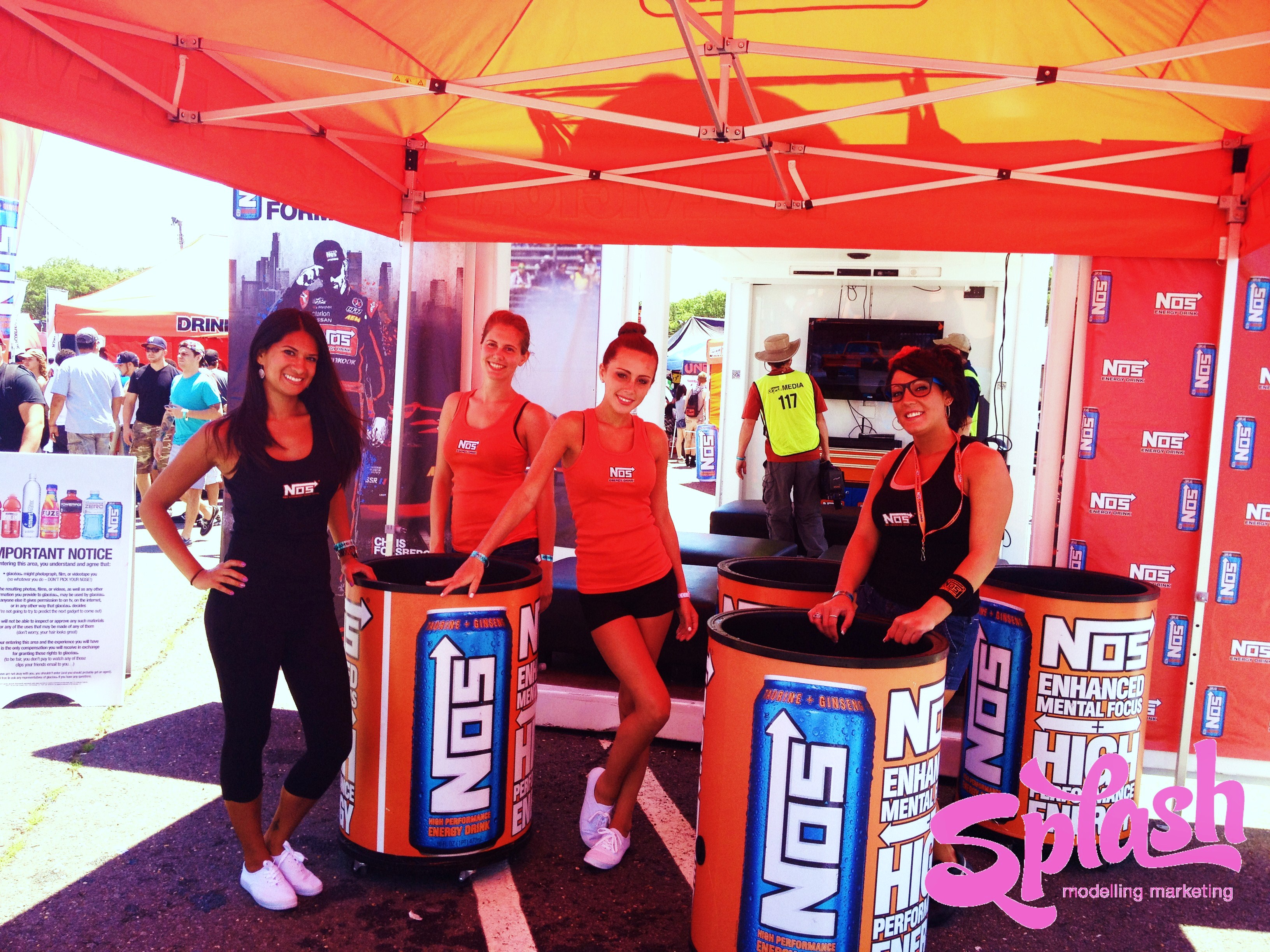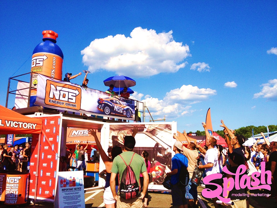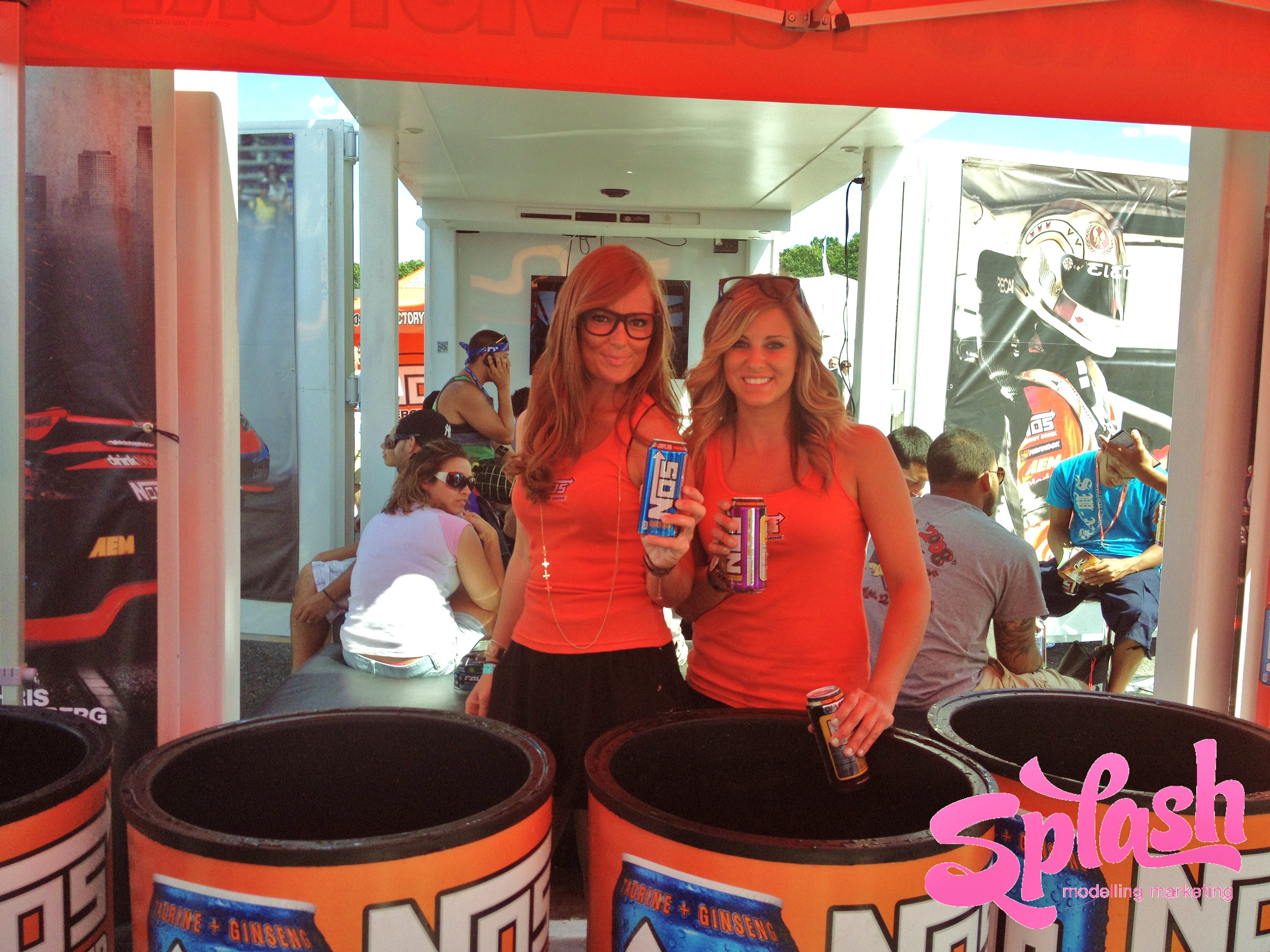 Throughout the weekend the Splash MM girls attracted a lot of attention in their sexy blue NOS dresses and tight orange tank tops while promoting all 6 invigorating NOS flavours. The girls handed out complimentary NOS drinks, sun glasses, lanyards and other swag in order to convey NOS’ authentic passion for motorsports while keeping the racegoers energized and ready for more action!