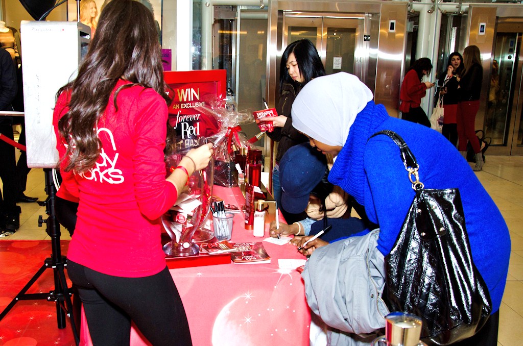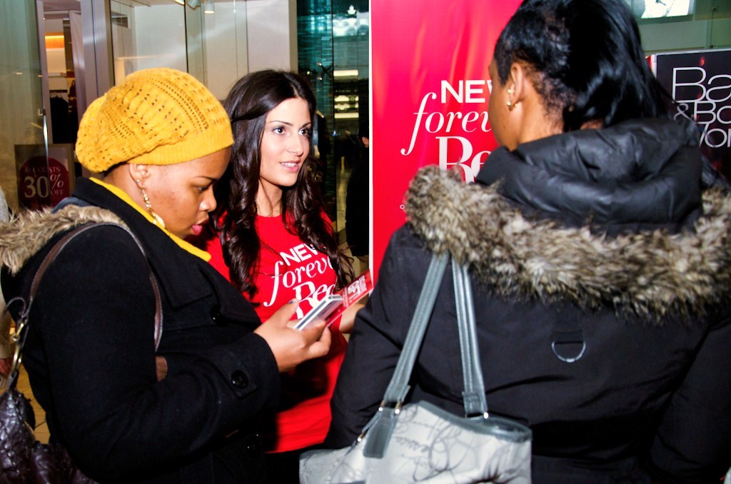 The campaign called for one male and two female Splash MM models stationed at the Forever Red booth in Yorkdale Mall, as well as a street team positioned at different hot-spots in the Toronto. The male model was dressed in a black tuxedo which exudes the same sexy confidence and luxury as Forever Red. Ladies were welcomed to the booth to sample the new scent and have their photo taken with our model to enter a contest to win over $200 worth of Forever Red product.