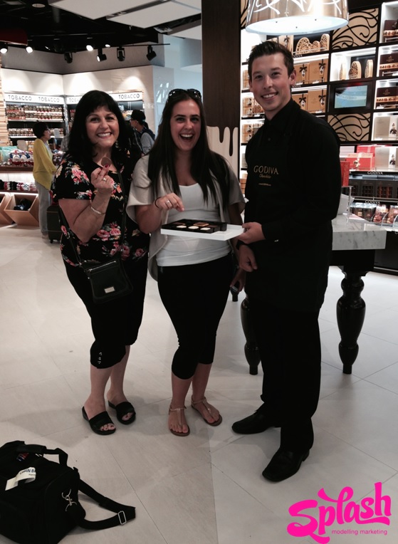 Along with the exciting new appearance, customers were given the opportunity to revel in the delicious treats by sampling different flavours from Splash MM reps. With every taste a new Godiva customer was born! Giving potential customers the ability to sample these amazing treats put no doubt in their mind that they needed to purchase Godiva products. Every last customer left with their hands full of various Godiva products due to the satisfying taste and exceptional service provided by the Splash MM reps. This partnership has flourished and Splash MM continues to work alongside Godiva at the Airport.