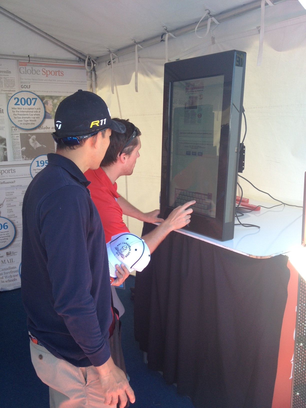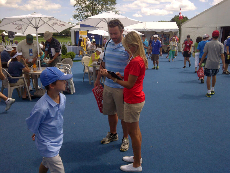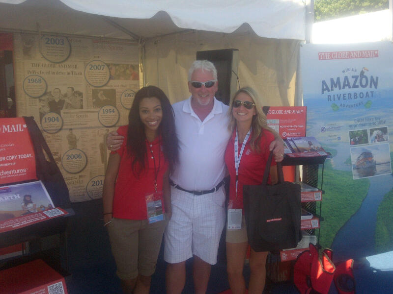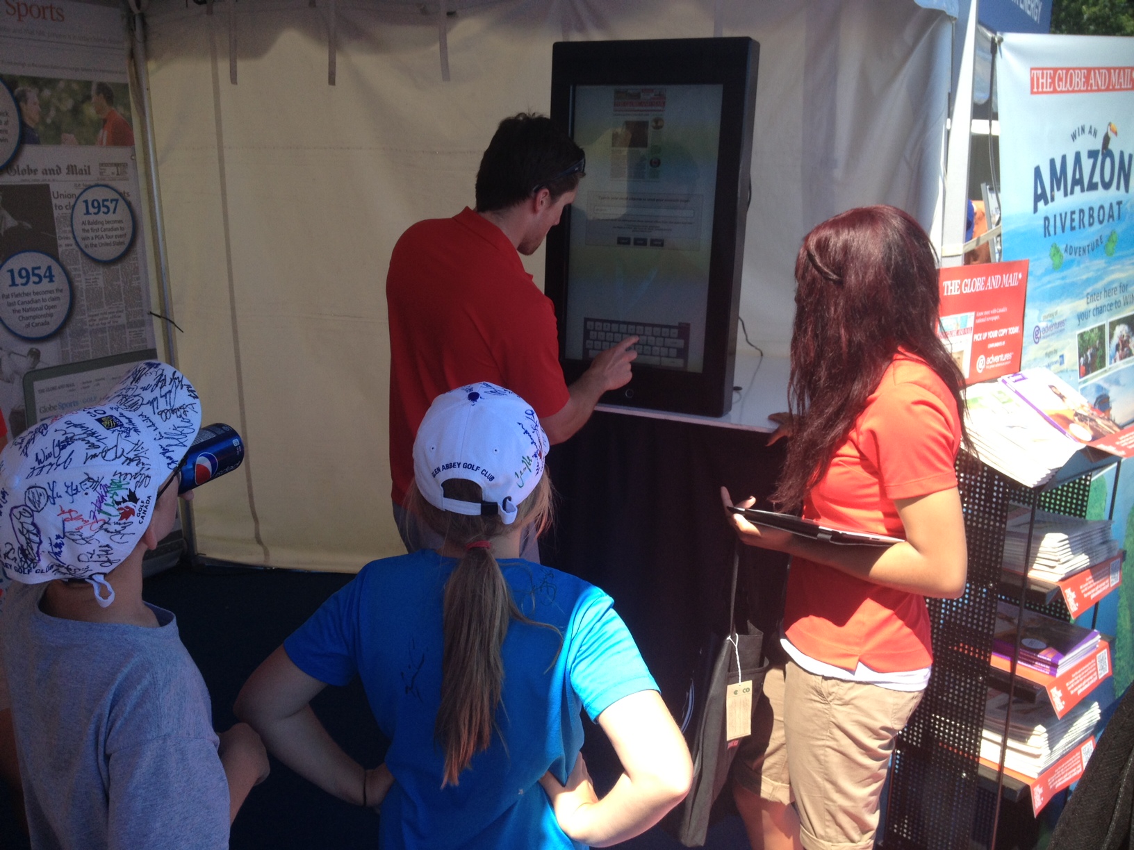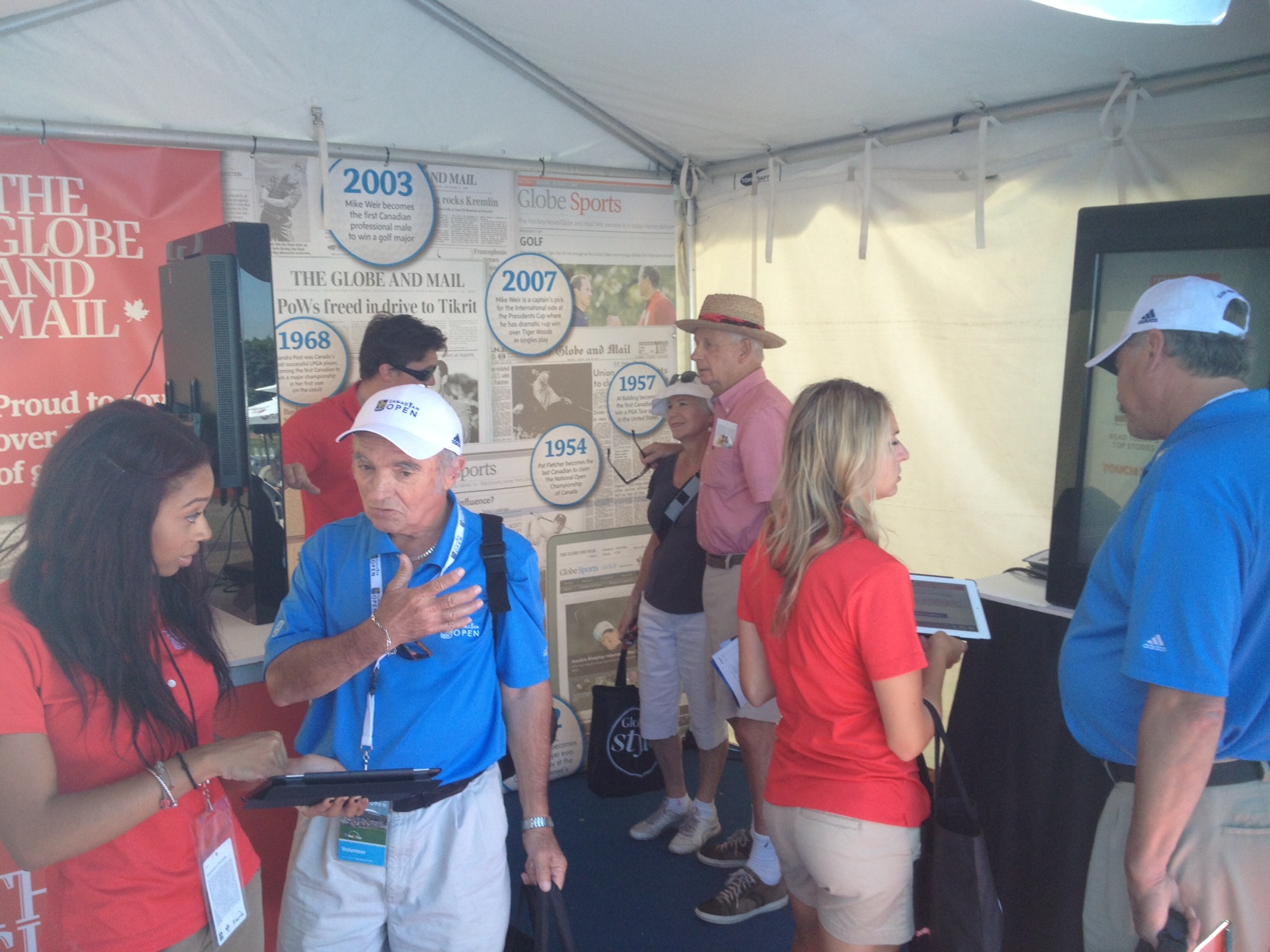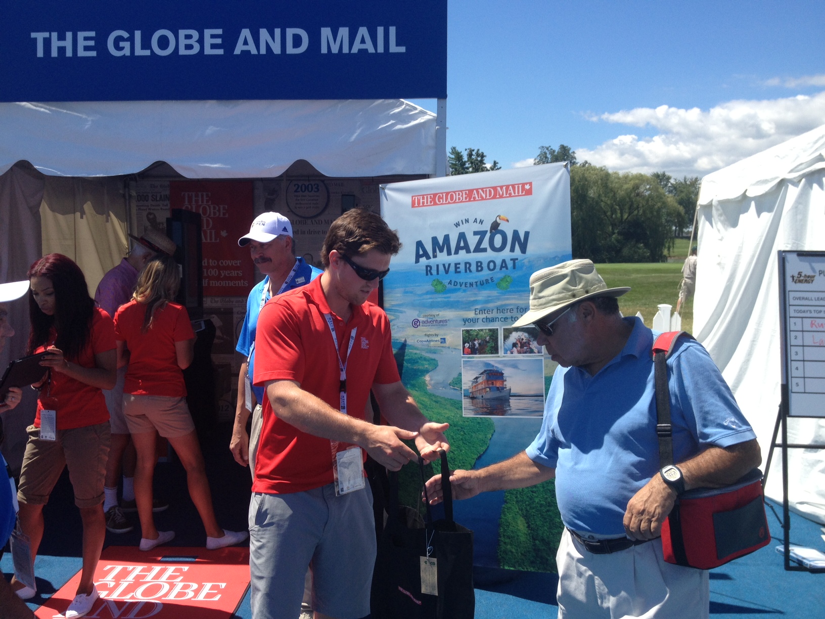 Splash MM also utilized their technology driven knowledge to arm their brand ambassadors with Ipads. Each consumer was entered for a chance to win a grand prize trip to the Amazon provided by G Adventures and Copa airlines. For those that wanted more of an experience, pictures were taken to mimic the front page of The Globe and Mail featuring headlines, photos and information that was sent to each person’s email to view after the event. With such a large crowd gathering each day thousands of golf enthusiasts were pleased with the experience they had at the Globe and Mail booth and Splash MM brand ambassadors.