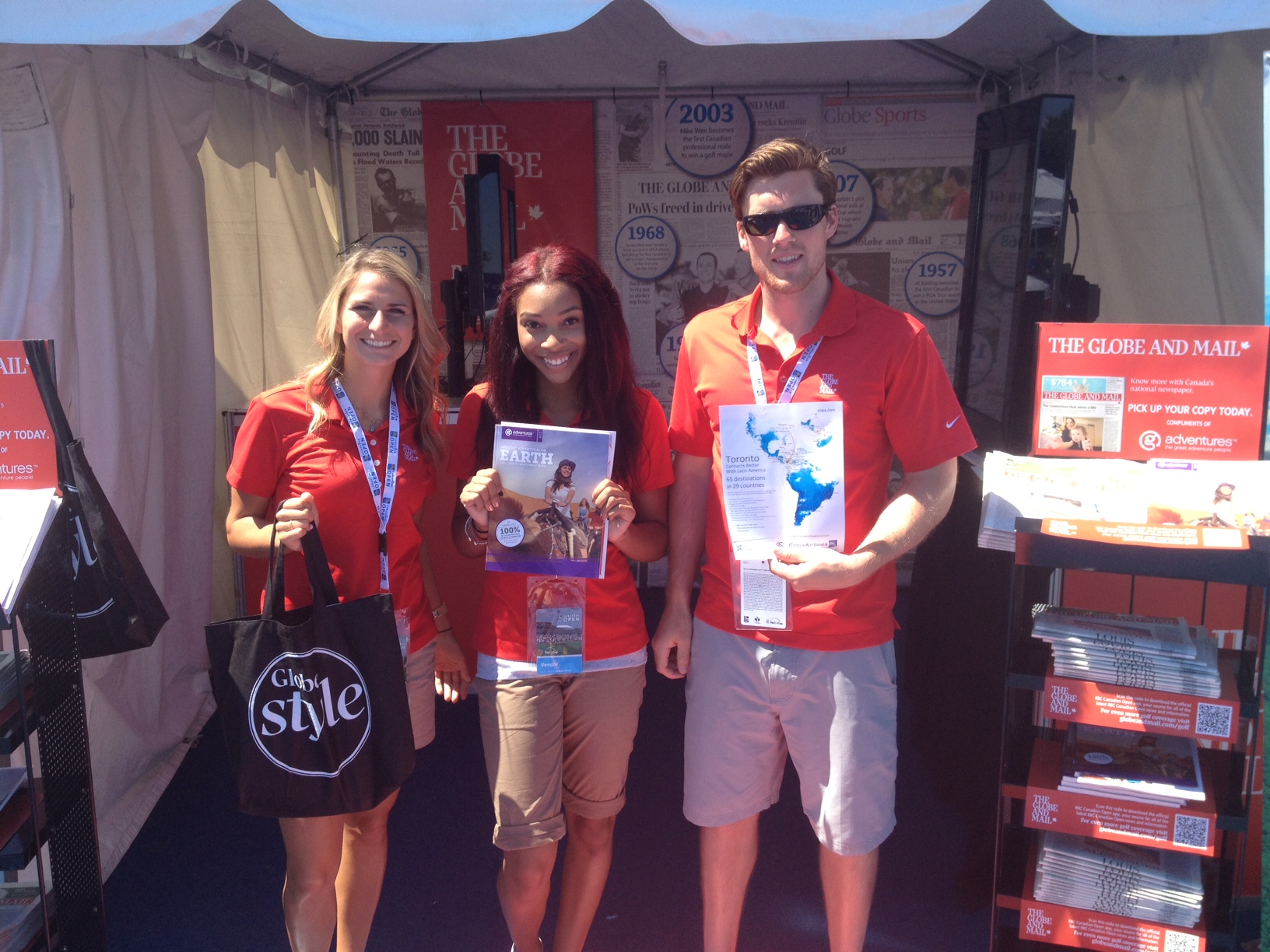 Splash MM brand ambassadors were stationed throughout the vendor’s section providing each on-comer with a multitude of Globe and Mail complimentary products and experiences. For those that arrived early in the morning and forgot to brush up on their reading, brand ambassadors provided a complimentary Globe and Mail newspaper each day. This was accompanied with a Copa Airlines brochure, G Adventures brochure, a complimentary 90-day subscription offer and a Globe and Mail Bag.